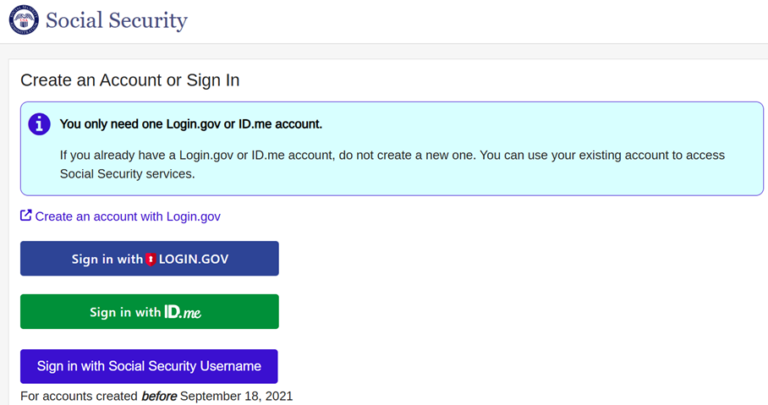 The SSA is phasing out the old username and password login method for My Social Security accounts created before September 18, 2021. Users will need to transition to one of two new login options: